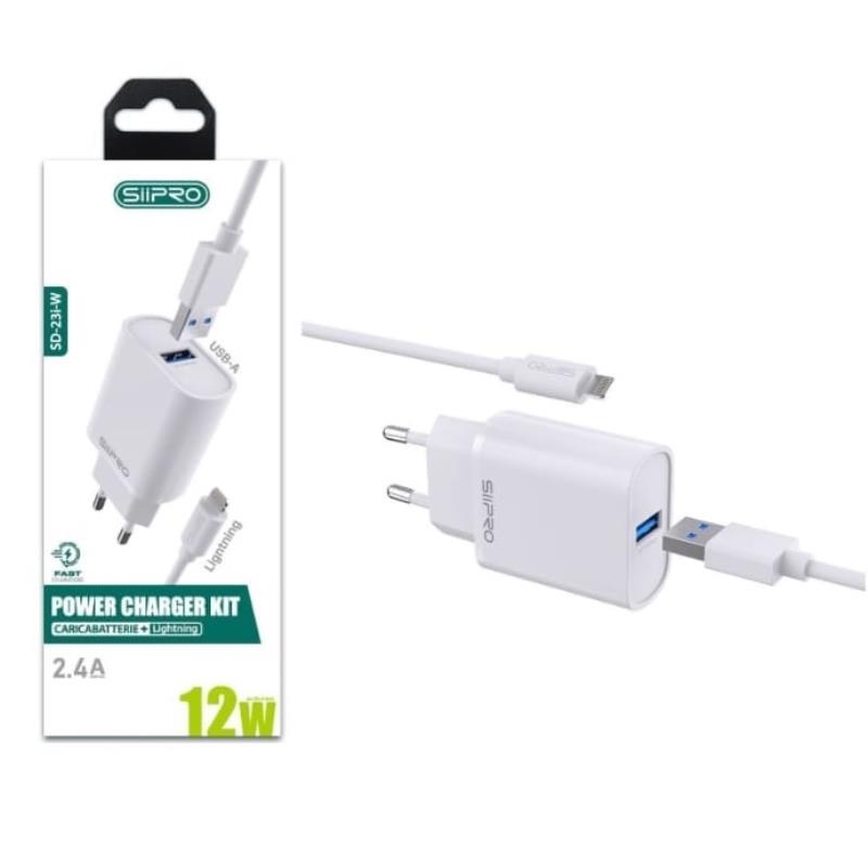 TRAVEL SIIPRO CON UNA PORTA USB DA 2,1A + CAVO USB BIANCO PER APPLE IPHONE 5, IPHONE 5C, IPHONE 5S, IPOD SETTIMA GENERAZIONE, IPHONE 6, IPHONE 6 PLUS, IPHONE 6S, IPHONE 6S PLUS, IPHONE SE, IPHONE 7 , IPHONE 7 PLUS, IPHONE 8, IPHONE 8 PLUS, IPHONE X, IPHONE XS, IPHONE XS MAX, IPHONE XR, IPHONE 13 MINI, IPHONE 13, IPHONE 13 PRO, IPHONE 13 PRO MAX